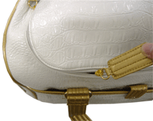 Clever&Sexy・・・ クレバー・・・そしてセクシーに・・・ そんなブランド【Clesy:クレイシー】より。 そう・・・ Divaな私達は、常にCleverでSexy... そんな子供達にオススメのキャリーバッグ。 クロコダイル風にかたどったホワイトに 高級感をかもしだすゴールドのライン。 お揃いのハーネスリードとカラーが さらにDiva心をくすぐる。 一流のキャリーバッグを愛しいあの子に・・・ ●バッグ上部 :ファスナーでの開閉式 ●バッグサイド:メッシュ素材の小窓 ●収納 :フロントポケット×1 サイドポケット×1 内ポケット×1 ●バッグ内部:丸洗い可能クッション付き 取外し可能ビニール付き ●ハーネスリード&カラー付き |